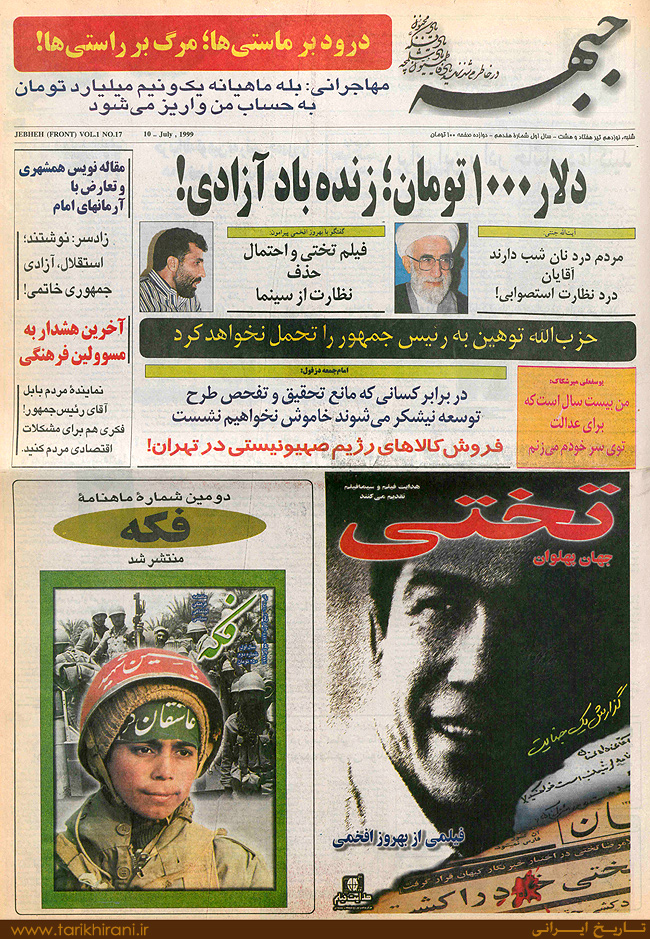 به گزارش ستاد نماز جمعه ی علی آباد کتول به نقل از تاریخ ایرانی, با انتشار صفحه اول روزنامه جبهه، گریزی به ۱۴سال قبل زده و روزهایی که دلار در بازار آزاد هزار تومان قیمت داشت.